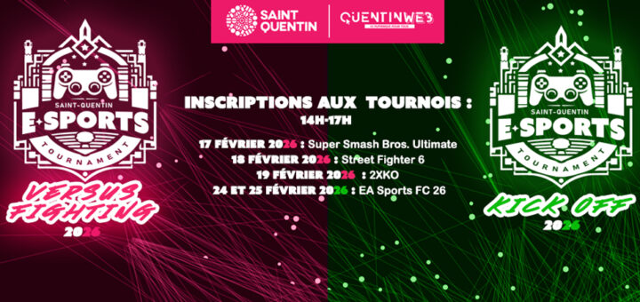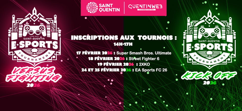 Inscriptions pour les tournois QuentinWEB Gaming Club : VERSUS FIGHTING & KICK OFF organisé par QuentinWEB et les espaces Solidarité 2.0 de Saint-Quentin (GRATUIT & GOODIES À GAGNER). Au Programme : 5 Jours, 5 Défis ! VERSUS FIGHTING : 17...