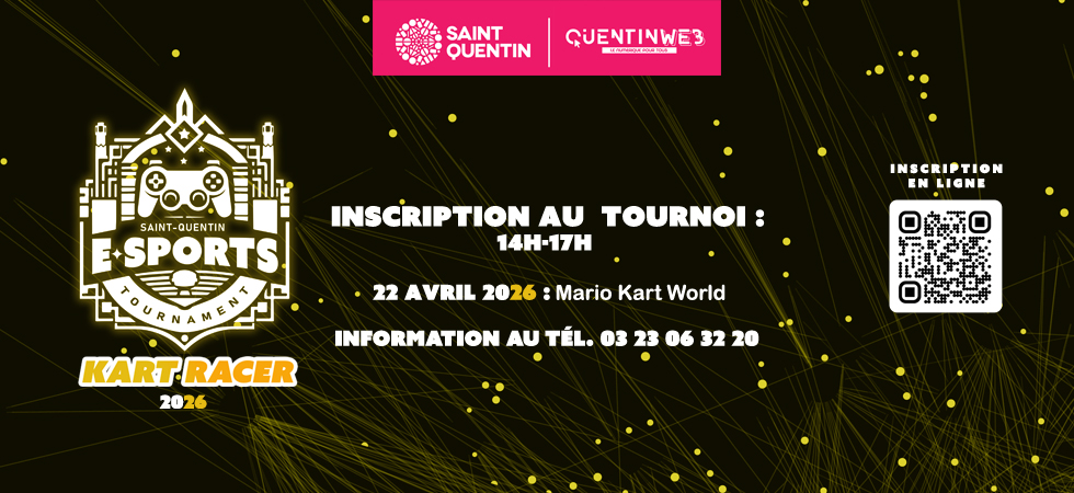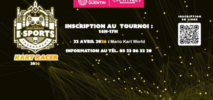 Inscriptions pour le pour tournoi QuentinWEB Gaming Club : KART RACER organisé par QuentinWEB et les espaces Solidarité 2.0 de Saint-Quentin (GRATUIT). Au Programme : 22 avril : Mario Kart World(Switch 2 – 1 VS 1 VS 1 VS 1 – lieu : QuentinWEB)...