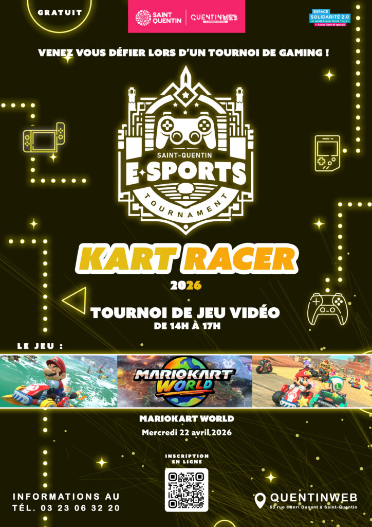 Inscriptions pour le pour tournoi QuentinWEB Gaming Club : KART RACER organisé par QuentinWEB et les espaces Solidarité 2.0 de Saint-Quentin (GRATUIT).